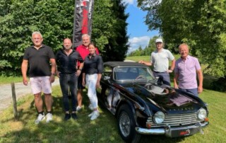 Der Triumph-Oldtimer war die Deko beim Siegerfoto mit (v.li.)